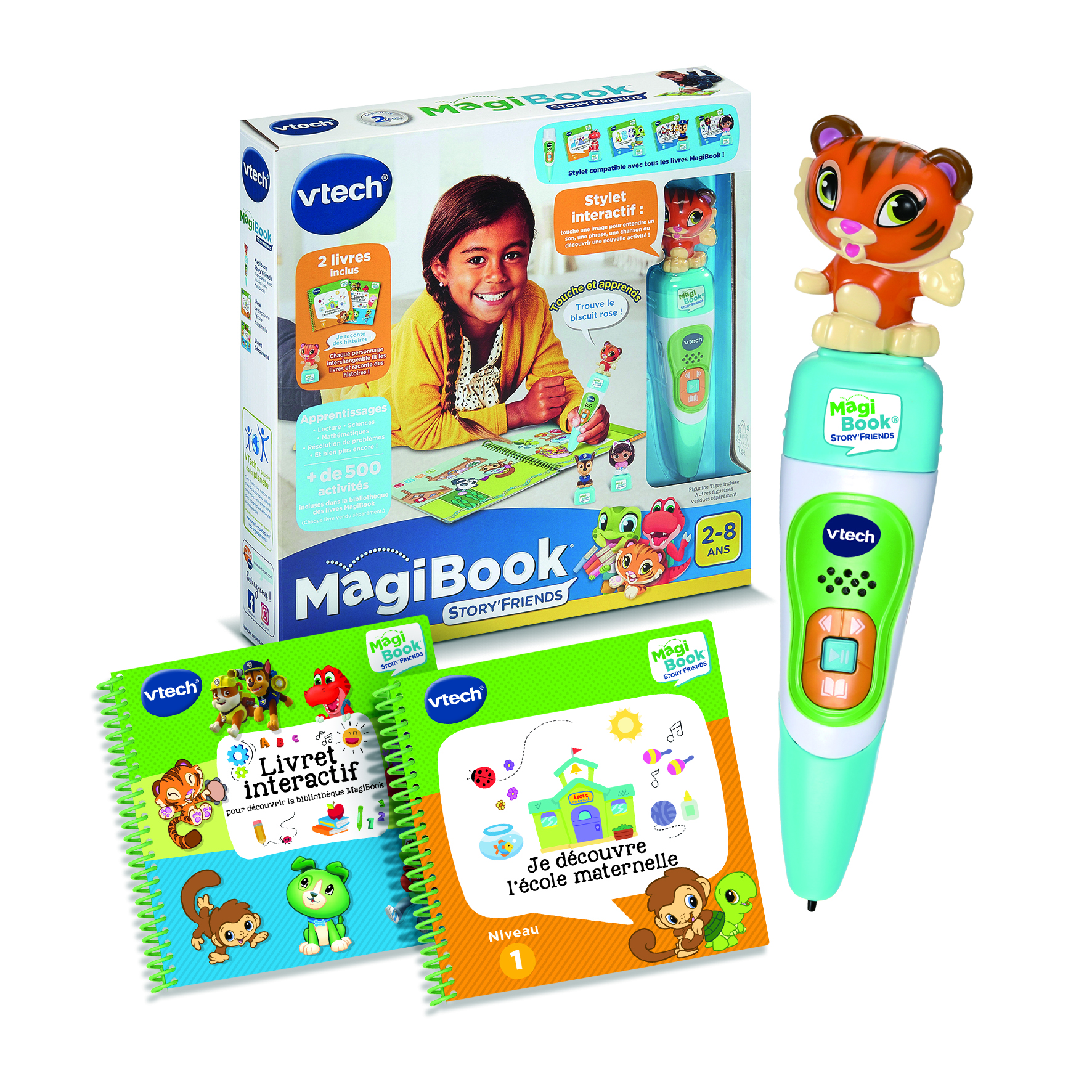 MagiBook Story'Friends est un stylet interactif évolutif et facile à utiliser, conçu pour faire découvrir un monde de connaissances dès 2 ans. Grâce à un simple contact sur les pages des livres Magibook, le stylet déclenche des sons, des chansons, des histoires et des jeux interactifs.
