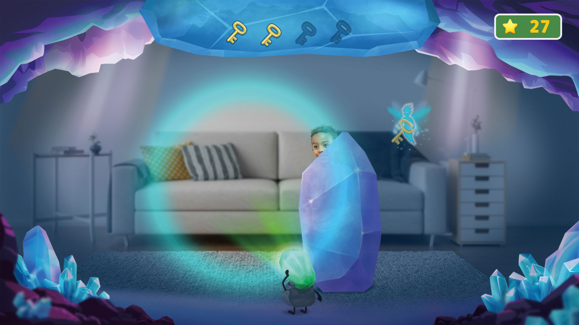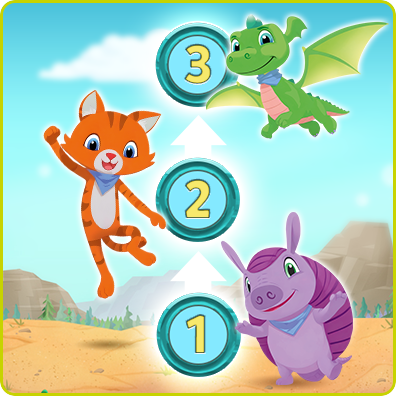 Joue à cache-cache derrière les rochers et évite de te faire répérer par le gardien de la caverne ! Apprends les lettres, les sons et les mots