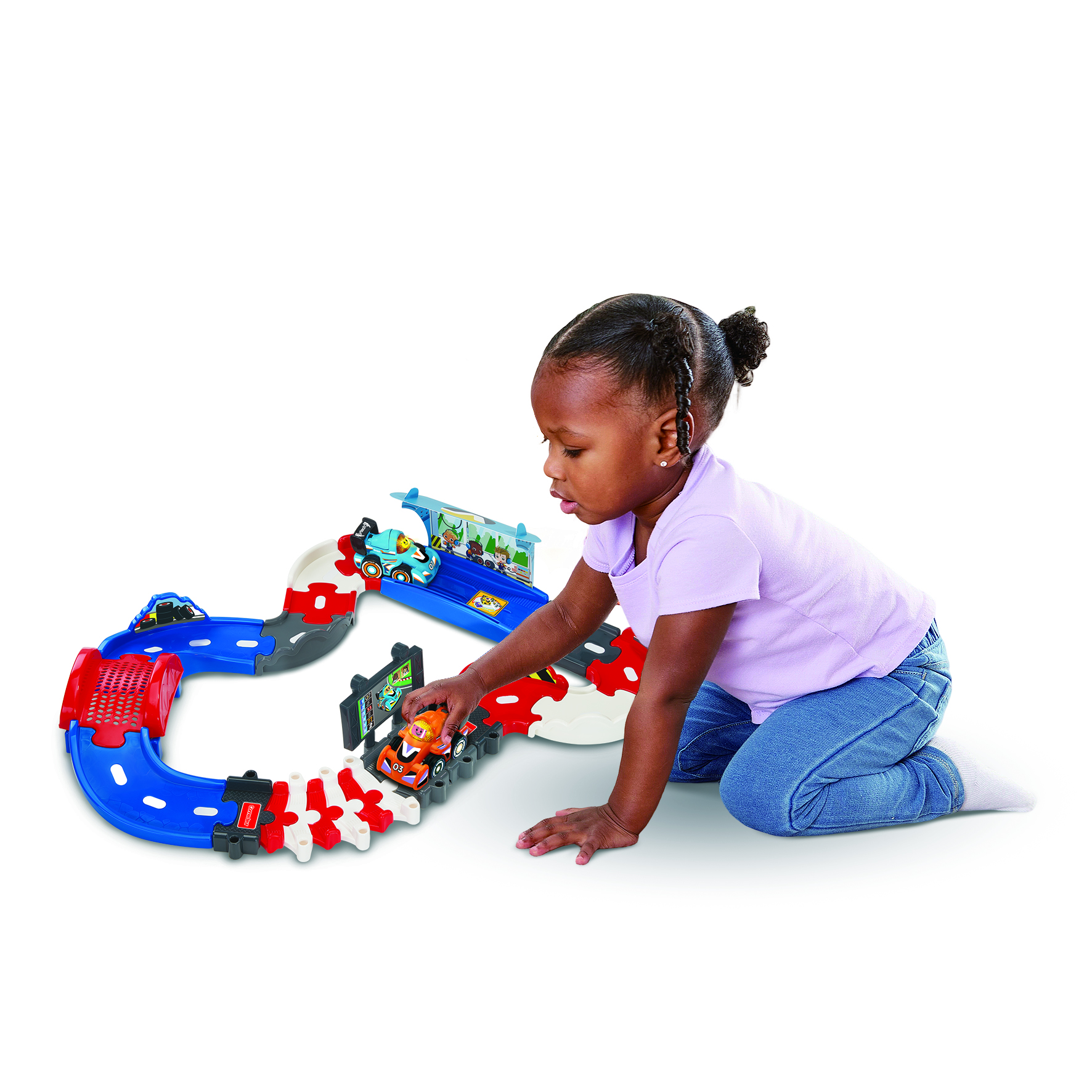 Pensé pour les tout-petits dès 1 an, ce circuit de course propose une expérience immersive grâce à un véhicule parlant et musical, un stand technique pour les pauses entre deux sprints, et une Zone Magique qui déclenche des sons, chansons et phrases amusantes.