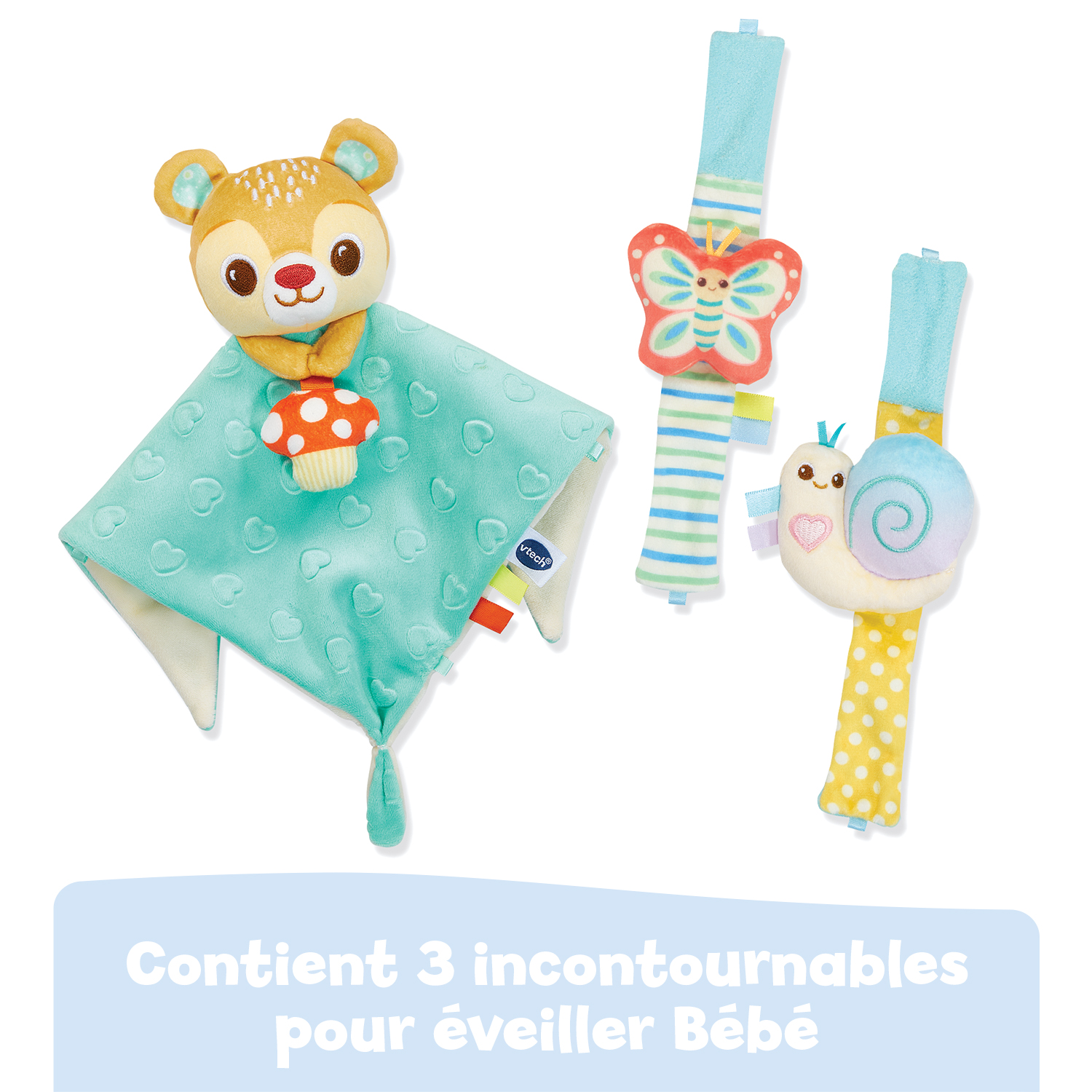 Un coffret naissance sensoriel et réconfortant pour éveiller Bébé en douceur.