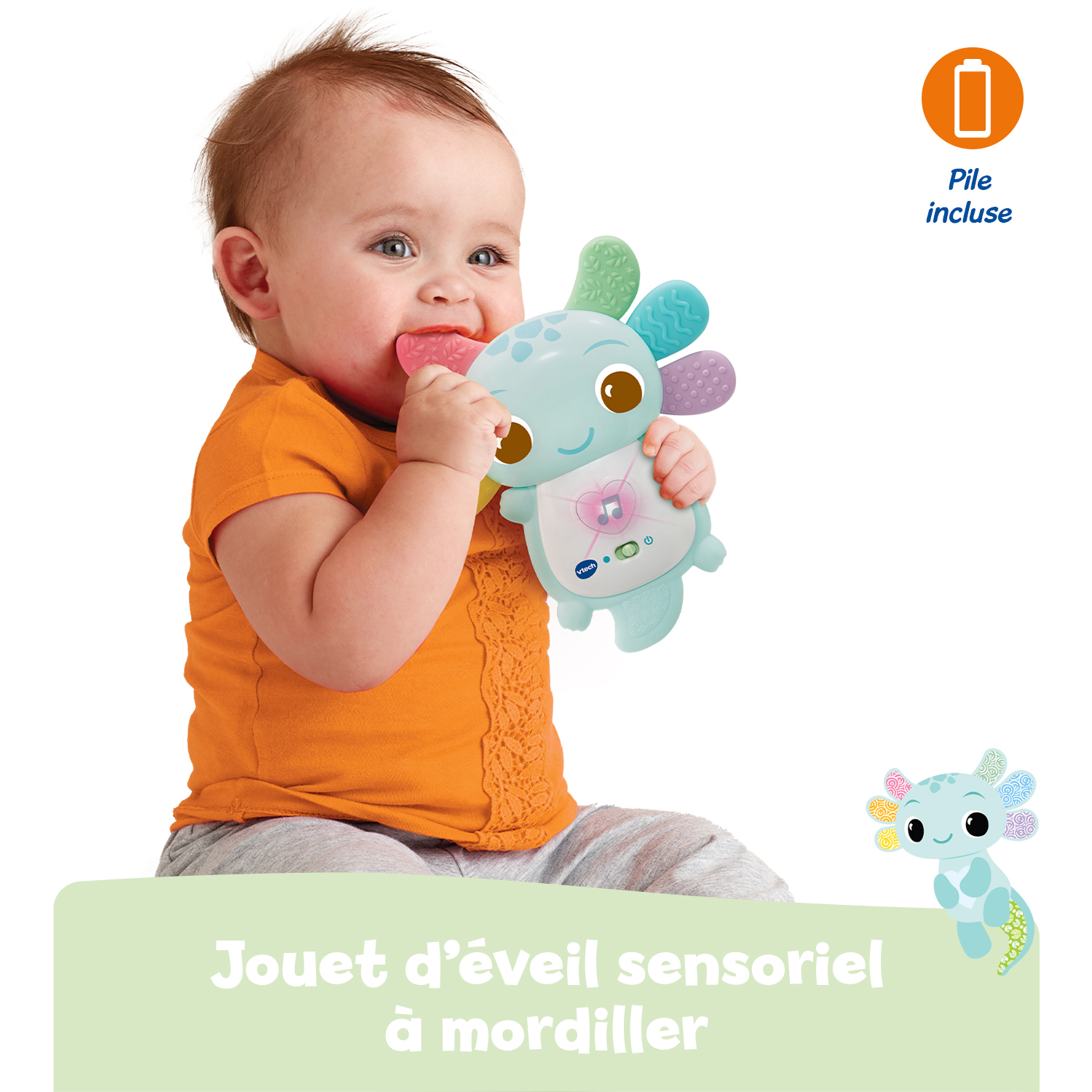 Un axolotl tout doux et lumineux pour soulager les poussées dentaires de Bébé.