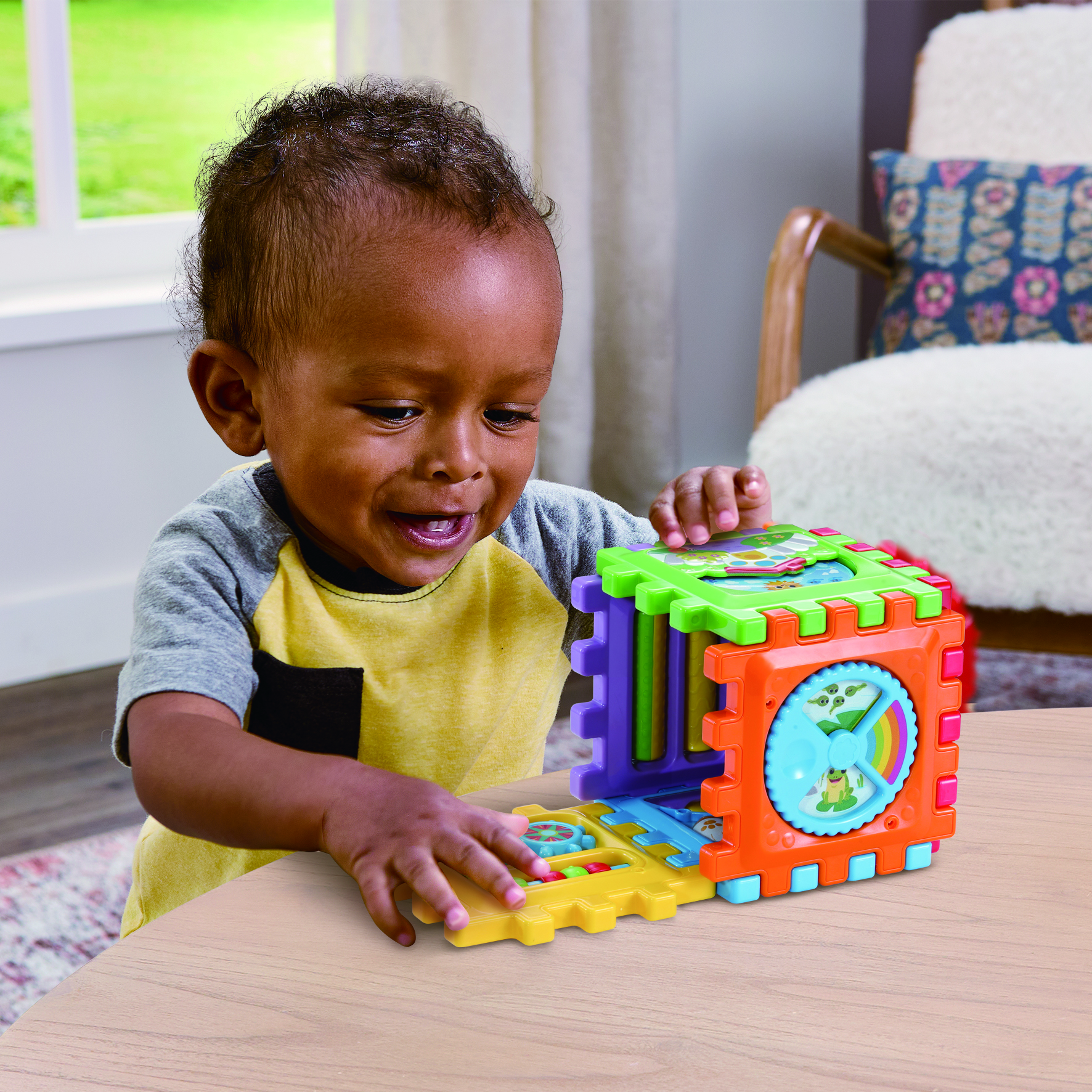 Un cube d’activités modulable avec 11 jeux sensoriels pour stimuler les tout-petits dès 12 mois.