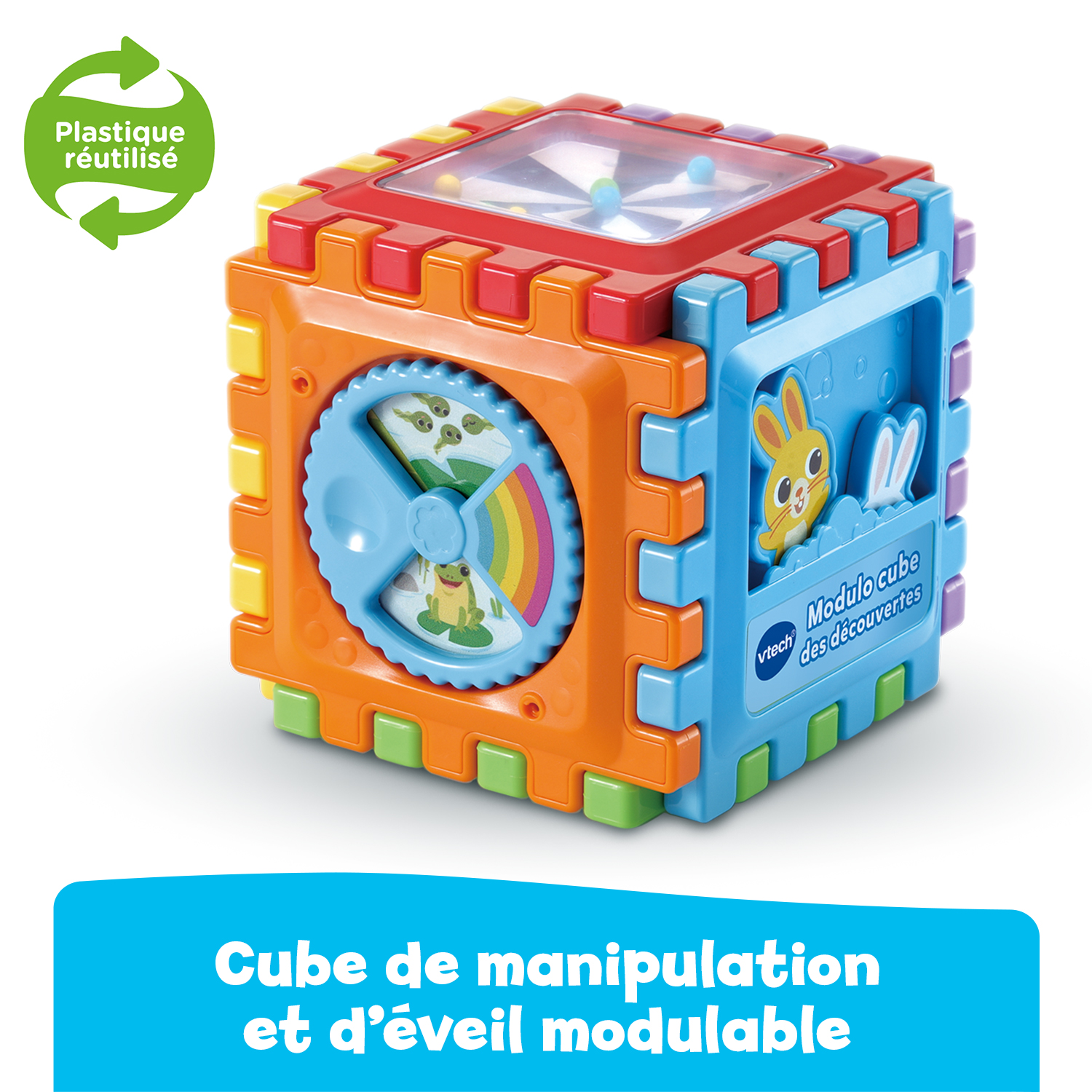 Conçu pour les enfants dès 12 mois, Modulo cube des découvertes est un cube d’activités évolutif, pensé pour éveiller la curiosité et stimuler le développement des tout-petits. Ce jouet est composé de 6 panneaux colorés à assembler et désassembler à volonté pour créer un cube, un plateau d’activités, ou même une petite maison.
