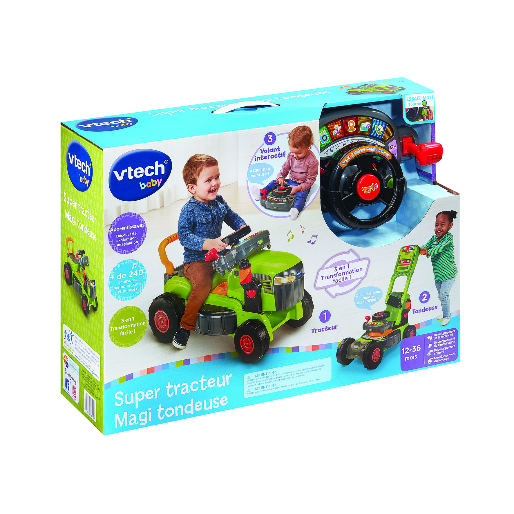 À la fois porteur stable, tondeuse ludique, avec un volant interactif amovible, ce tracteur pour enfant se transforme facilement pour multiplier les expériences de jeu. Son tableau de bord riche en fonctionnalités stimule l'imagination, la motricité et le langage tout en offrant une immersion sonore et lumineuse captivante.