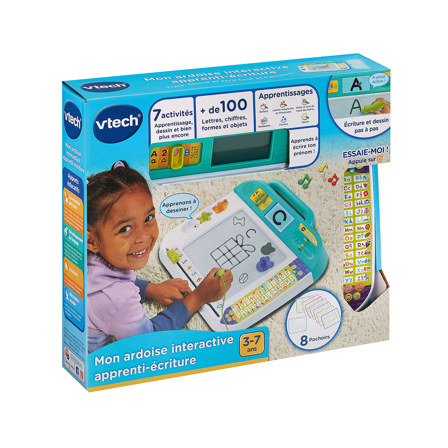Mon ardoise interactive apprenti-écriture est une ardoise magique destinée aux enfants dès 3 ans pour les accompagner dans l’apprentissage de l’écriture, des chiffres et des formes. Grâce à un stylet interactif et un écran animé, l’enfant est guidé pas à pas pour tracer lettres majuscules et minuscules, chiffres de 1 à 10, et jusqu’à 16 formes différentes.
