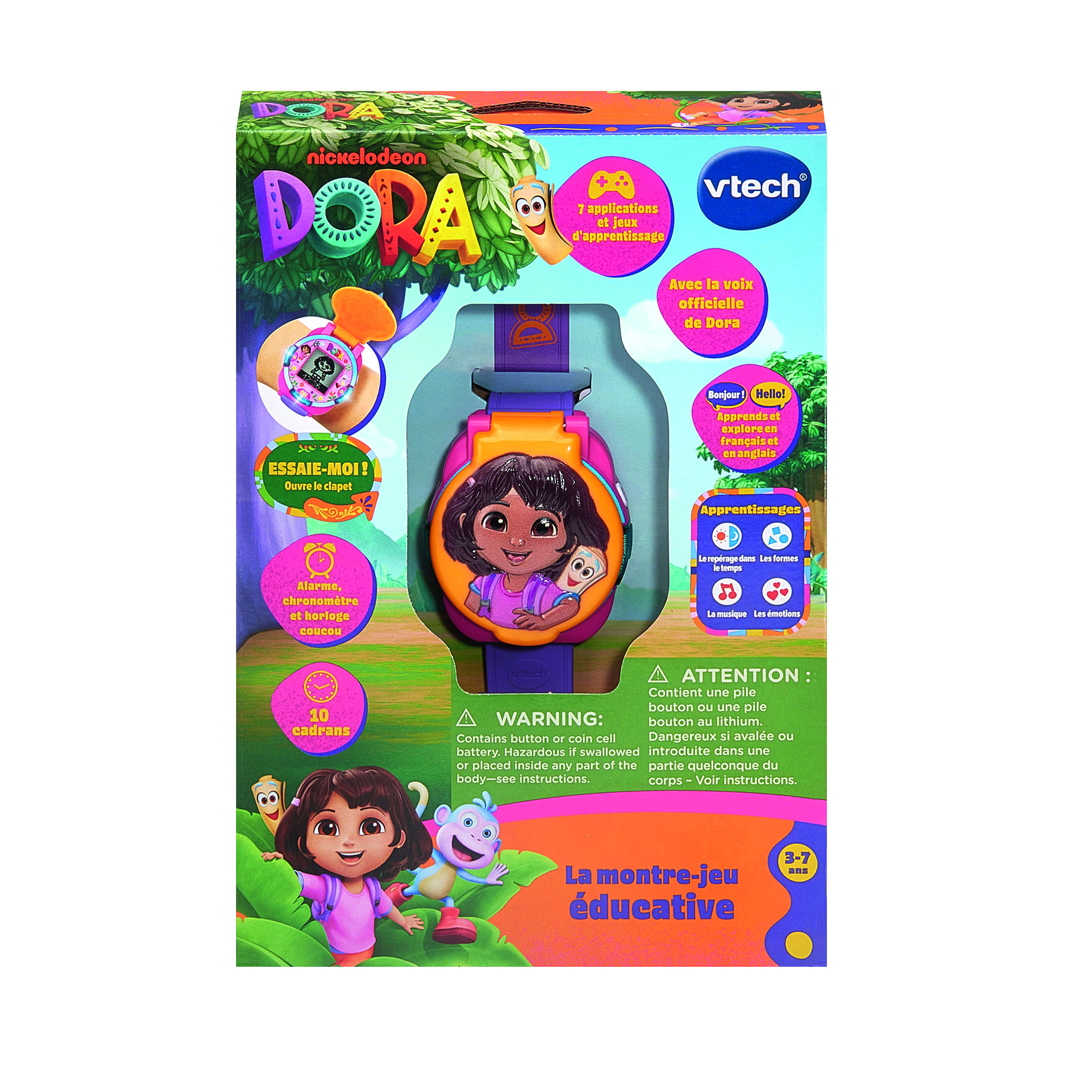 Avec la vraie voix de Dora et 10 cadrans personnalisables, une montre interactive pour apprendre en s’amusant !