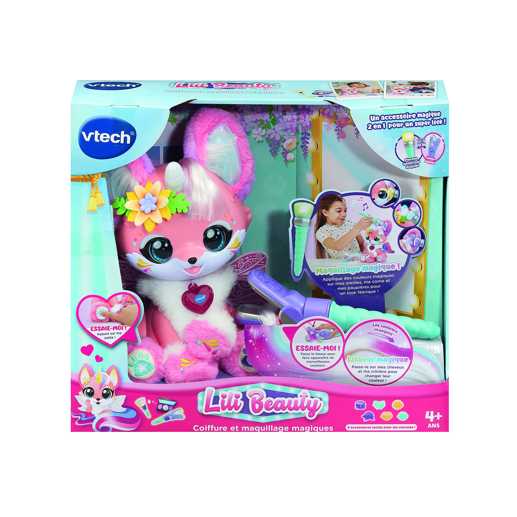 Grâce à son pinceau magique 2 en 1, Lili Beauty se transforme : en mode maquillage, elle illumine ses oreilles, paupières et sa corne avec des couleurs étincelantes ; en mode lisseur, elle change temporairement la couleur de ses cheveux et de sa queue. Elle chante, parle, bouge la tête et propose 8 jeux interactifs pour vivre de nombreuses aventures de beauté.
