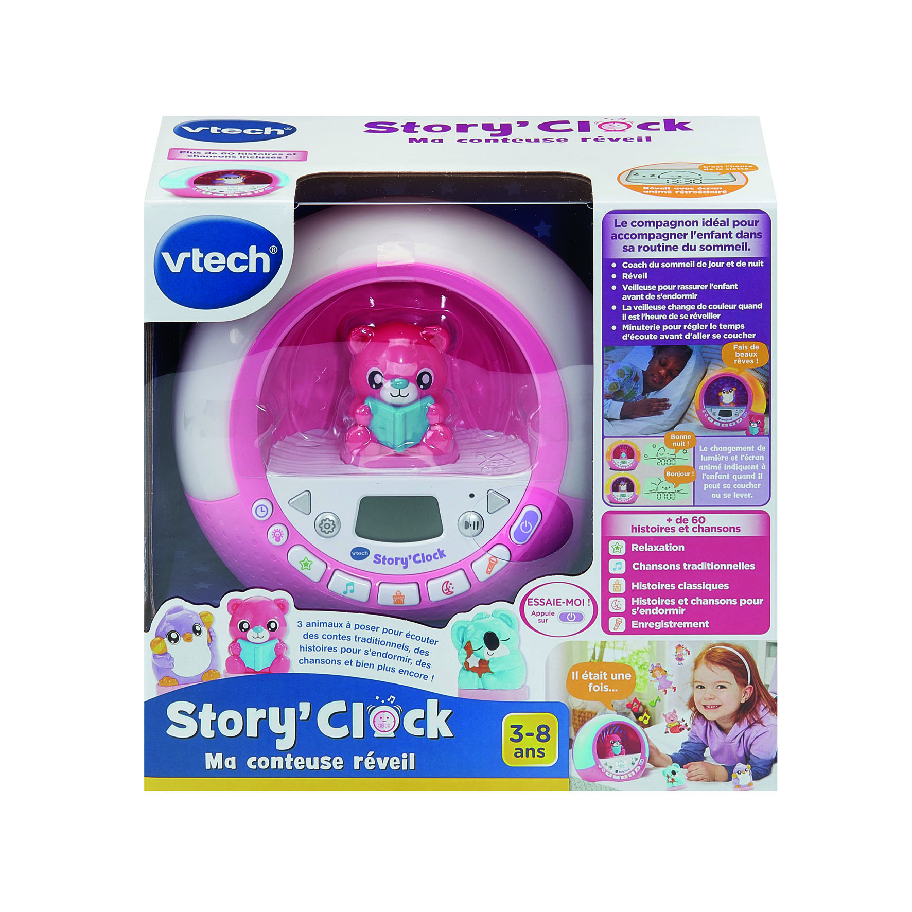 En plus, avec ses 3 adorables figurines, ses projections lumineuses, ses histoires captivantes et ses berceuses apaisantes, Story’Clock transforme le rituel du coucher en un moment rassurant, enchanté… et très attendu.